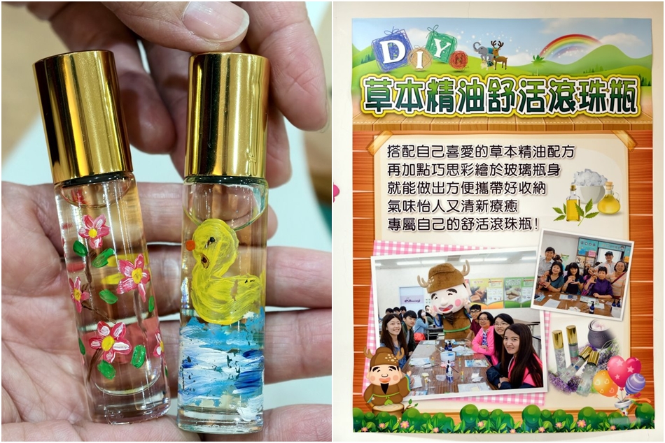 ▼另外一樣則是防蚊滾珠瓶,將草本防蚊精油配方裝入瓶中,再用廣告顏料畫出自己喜愛的圖案即可,每瓶都是獨一無二,小小一瓶帶出門使用也相當便利。