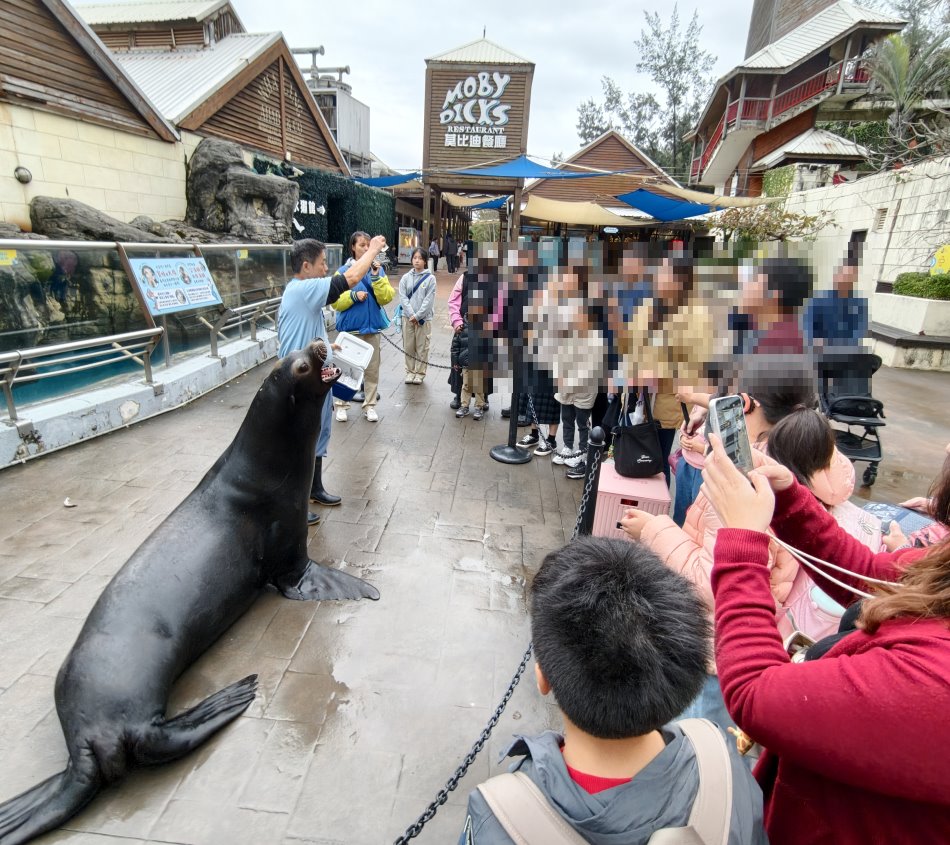 ▼14:30我們來到海獅劇場欣賞海獅巡警隊,結合環保議題與海洋保護的概念,搭配海獅搖頭晃腦的模樣特別可愛。