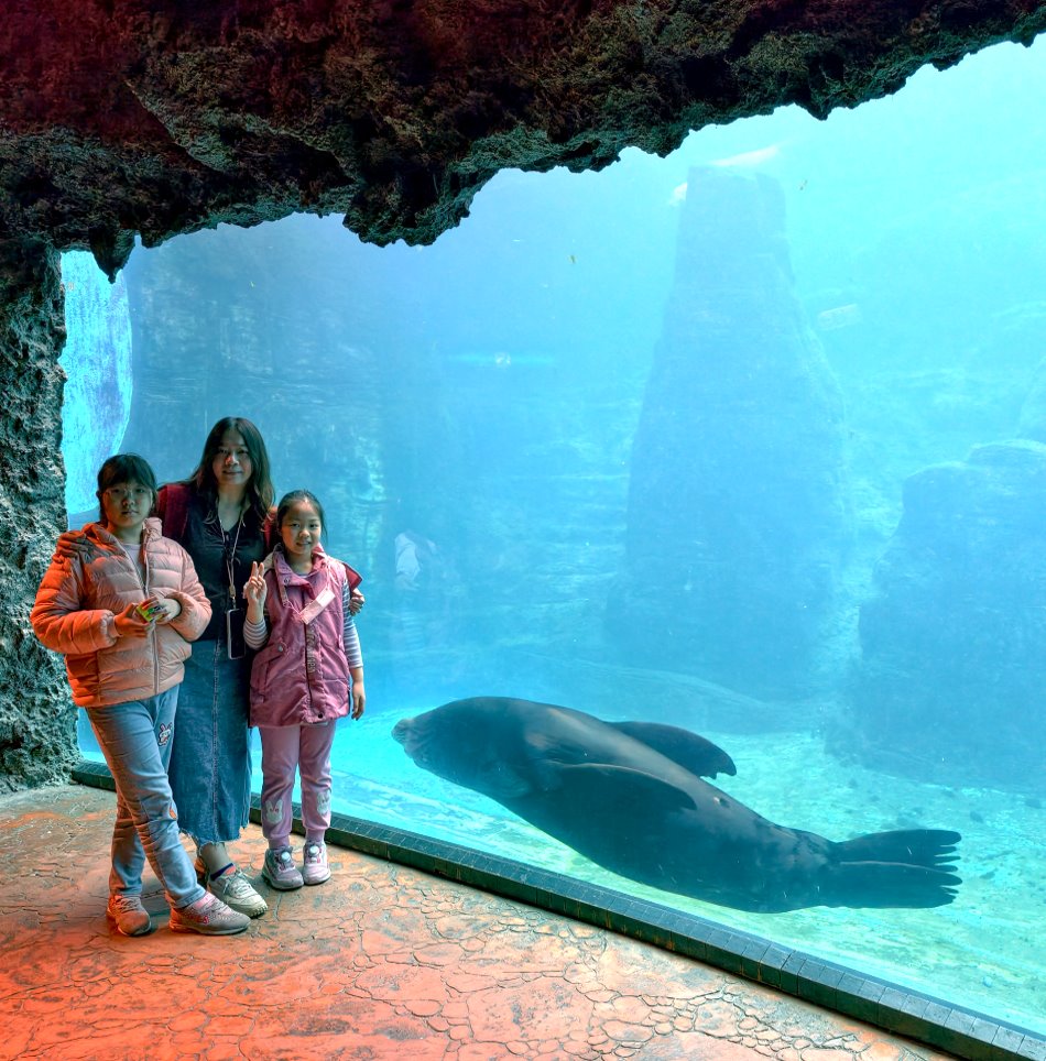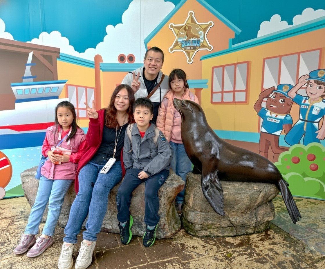 ▼三口組不僅認出海獅大雄,還認出唯一的海豹恰恰,看來前一天真的有認真聽解說!