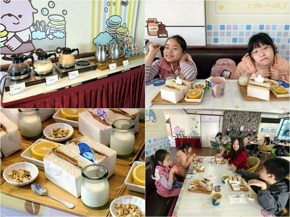 ▼早餐也是相當豐富,有三明治、燕麥、水果、優格,另外還有飲料喝到飽,大人、小孩都吃得很開心。
