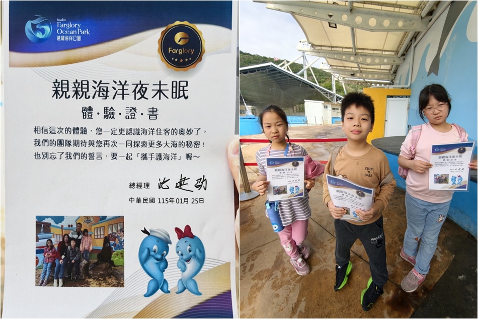▼耶~~領到親親海洋夜未眠的體驗證書,雖然沒有姓名但有全家福的照片,可以給小朋友帶回家當紀念。