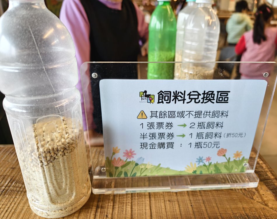 ▼規則寫得很清楚,建議小朋友一人一罐飼料體驗,留一些票券等等可以換點心。