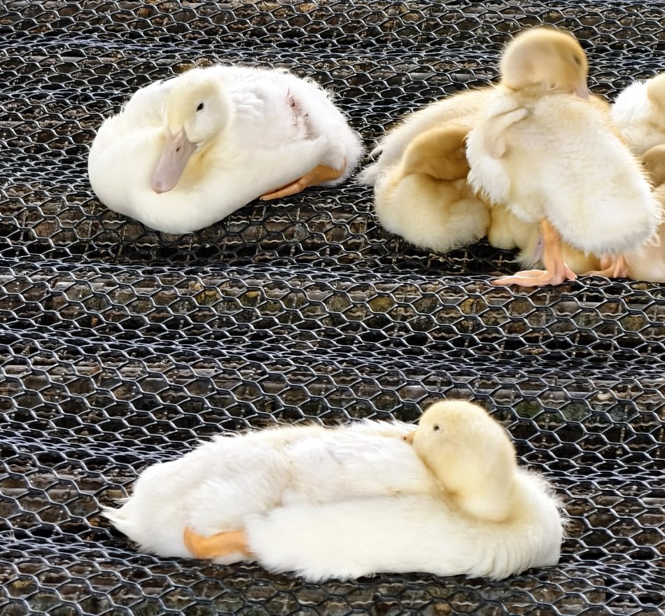 ▼還沒換毛的鴨鴨~感覺毛好柔~ 鴨舍內部設計考量到鴨子的生活習性,特別注重通風和採光,以維持良好的空氣品質和環境衛生。