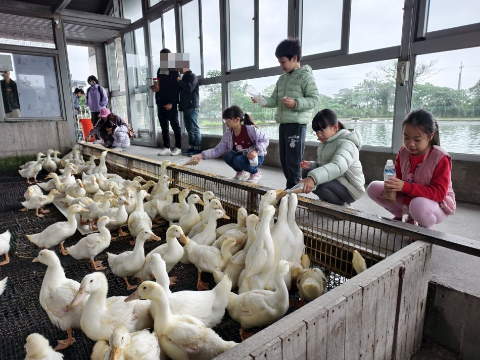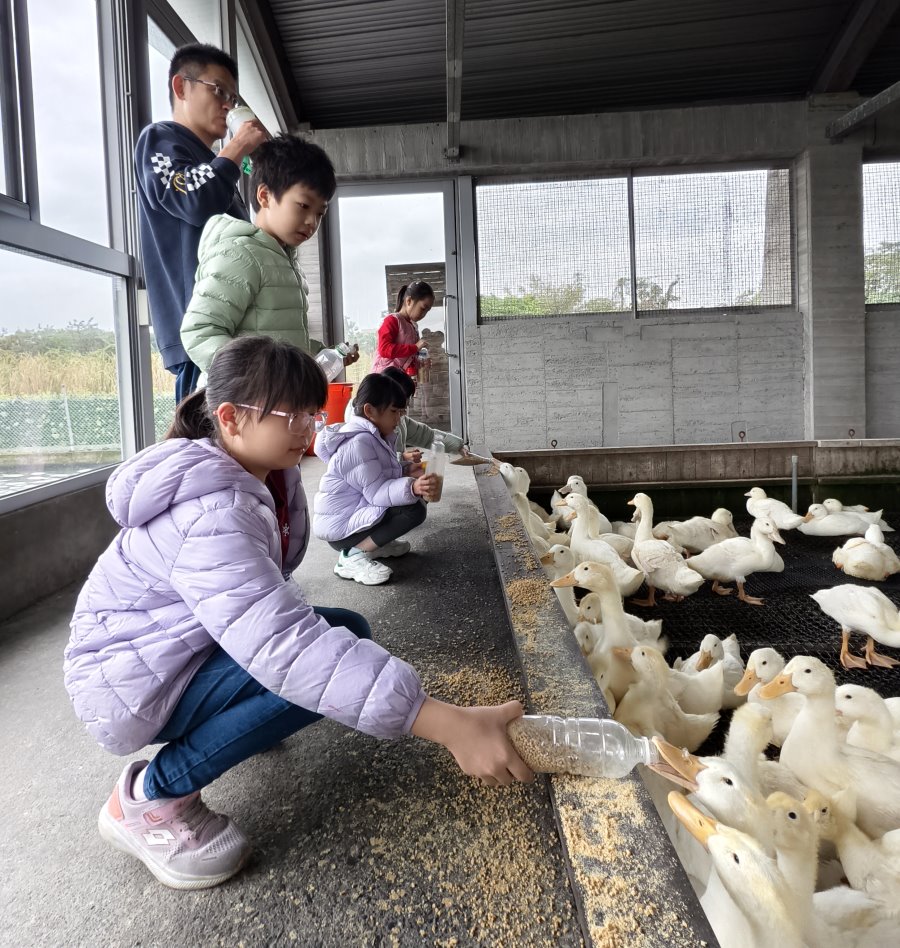 ▼透過餵食,小朋友可以近距離觀察鴨子搶食、嬉戲等行為,更深入地了解鴨子的生態。