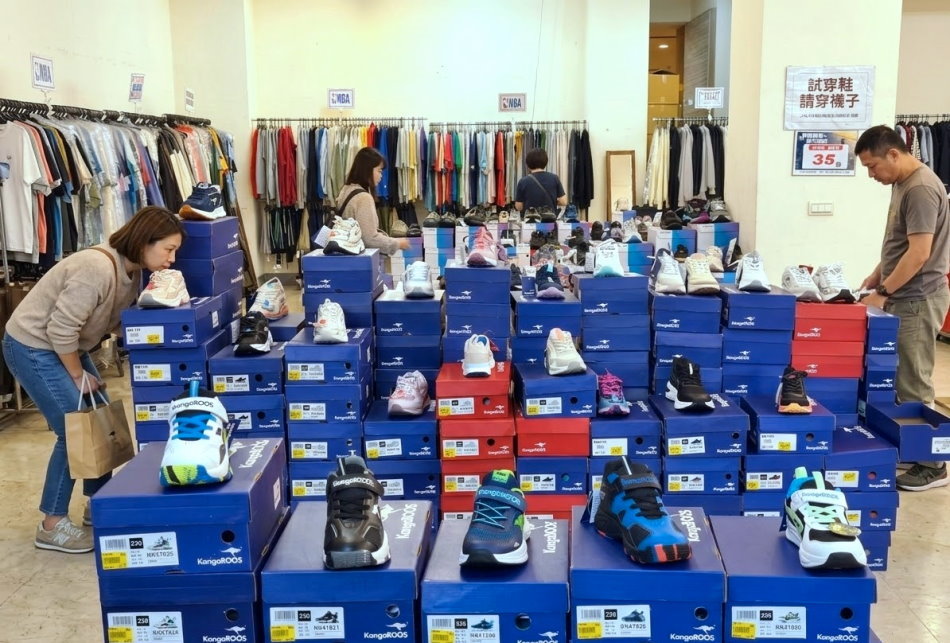 ▼KangaROOS(美國袋鼠鞋)以1979年首創「口袋設計」聞名,主打美式復古休閒、輕量舒適及百搭特性。熱門款包括結合Y2K風格的厚底老爹鞋、防潑水機能跑鞋、休閒餅乾鞋及舒適拖鞋,適合通勤、旅行與日常生活穿著;現場鞋款選擇多元,價格實惠,最低550元起跳,很多雙都不用千元真的好便宜。