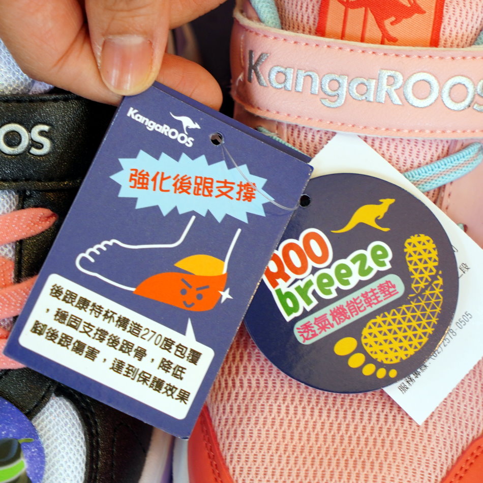 ▼KangaROOS童鞋 以「機能性」與「美式復古風格」為核心,特別針對發育中的兒童設計,鞋體輕量化以減輕行走與奔跑時的負擔;另外也備有氣墊底或彈力中底,提供良好的支撐與吸震保護,最棒的是顏色都很繽紛,很受小朋友喜愛。