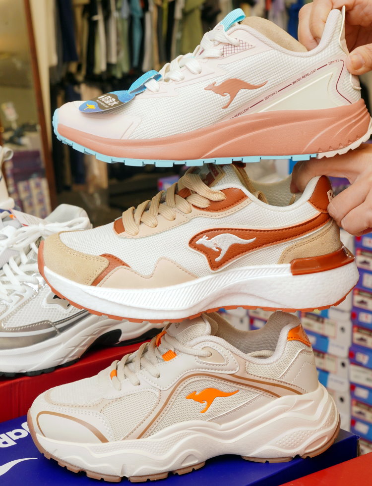 ▼KangaROOS女鞋著重於修飾腿部比例與色彩層次,是目前最受女性歡迎的類別;經典的人氣首選,以奶茶色、莫蘭迪色等「溫柔系」色調為主,具備厚底增高效果,能自然拉長腿部線條。