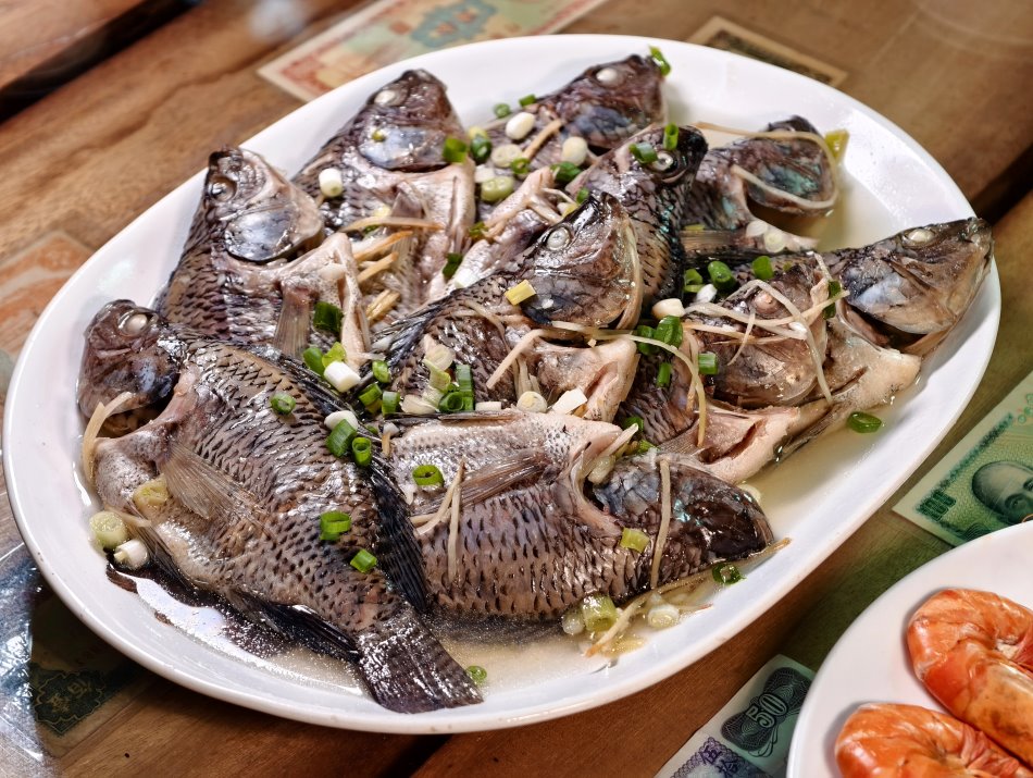 ▼鹹水吳郭魚,吃起來肉質細嫩、完全無土味,帶點微鹹的鮮美海味,一人一尾剛剛好。