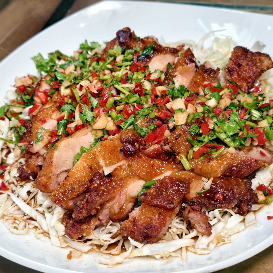 ▼泰式椒麻雞炸至外酥內嫩,份量十足,搭配酸香微辣的醬料更是超開胃!