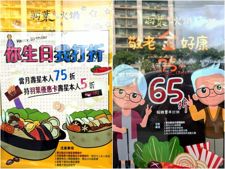 ▼另外還有生日壽星優惠與敬老優惠,當月壽星本人75折、持羽葉優惠卡壽星本人5折(同行9折);年滿75歲以上65折優惠(服務費不打折),以上皆需出示實體證件、需加10%服務費,有興趣的朋友記得把握機會來用餐!(詳細活動以現場公告為主)