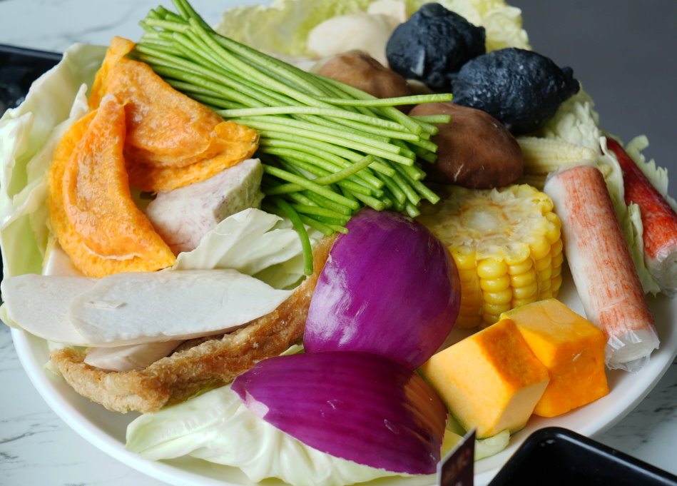 ▼我們也拿了一大盤菜盤,大多都是自己想吃的蔬菜,還有少許火鍋料,看起來繽紛又營養。