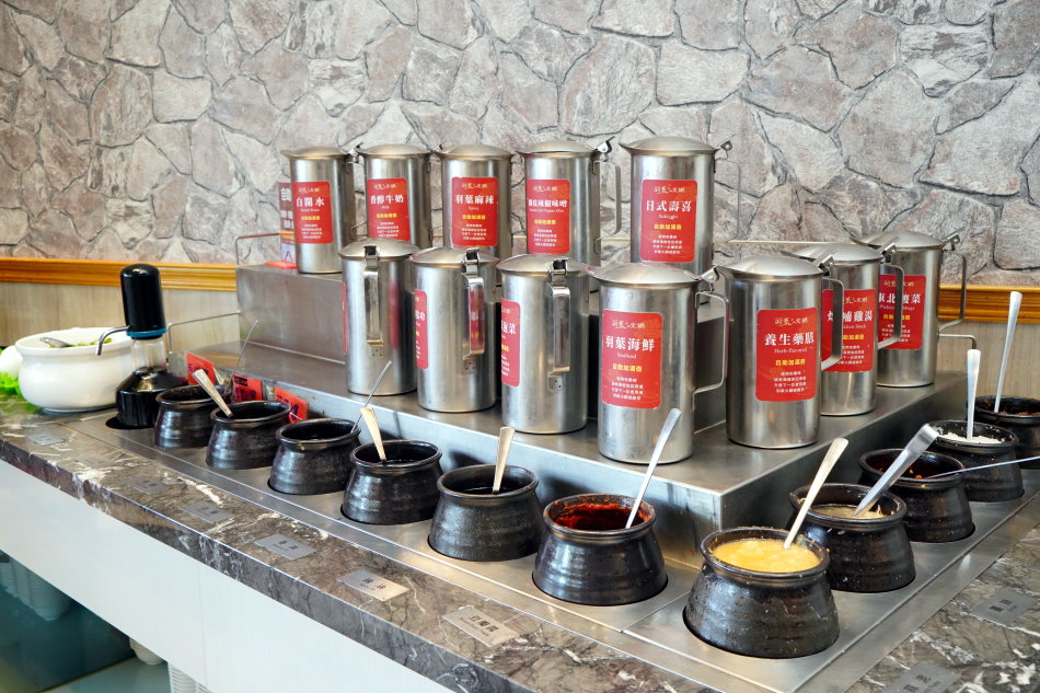 ▼湯頭、醬料區,可以有提供自助加湯服務,也有多種醬料可以任你搭配。