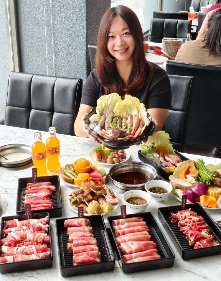 ▼上桌啦!!我們點的是御選套餐,光是肉品就有14種之多,另外還有8種海鮮,還有自助吧可以自己拿,建議可以四個人點一份比較剛好,我們光是套餐內容就吃不完,更別說自助吧(笑)!