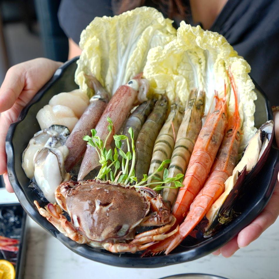 ▼海鮮拼盤有阿根廷天使紅蝦、黑虎大草蝦、白蝦、船凍小卷、日本干貝、肥嫩牡蠣、淡菜、螃蟹等多種食材,微涼的秋季正是吃蟹的好時節,來這吃準沒錯。