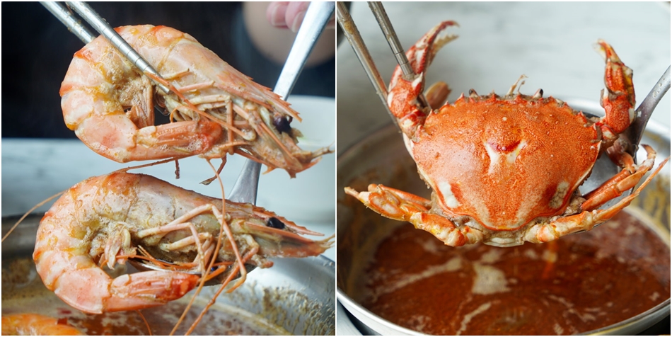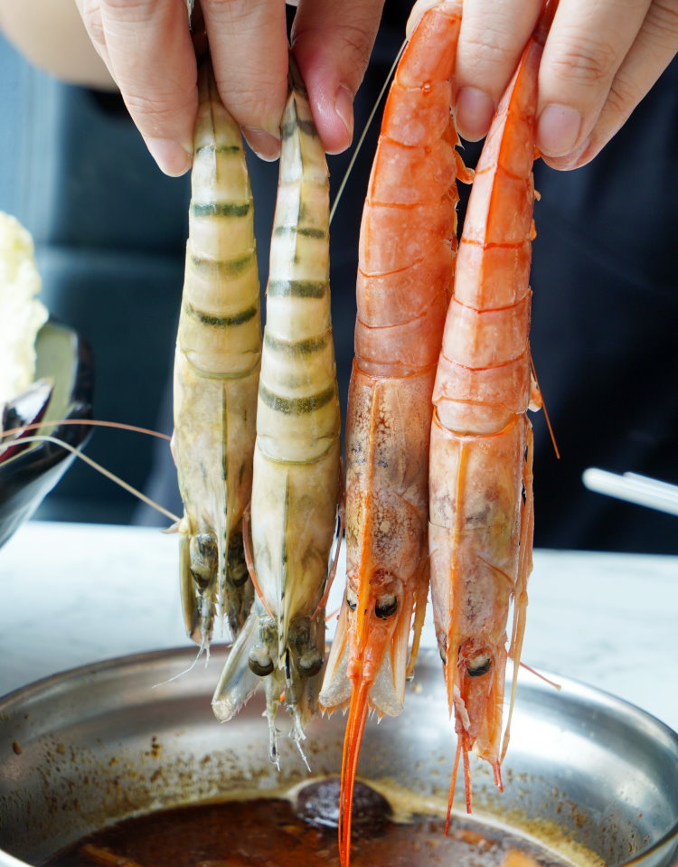 ▼阿根廷天使紅蝦、黑虎大草蝦,天使紅蝦柔嫩甜美、大草蝦緊實Q彈,兩種都好吃;黃金蟹肉質細嫩,搭配麻辣湯頭很夠味,啃食起來也很過癮。