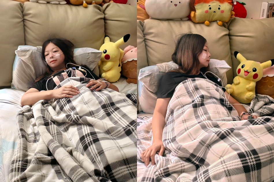 ▼當美嘉好不容易睡著,也會有打呼的情況發生,大口有時候也會被影響到睡眠,甚至還得戴耳塞才有辦法好好睡覺,對於我們兩個來說都是一個困擾。