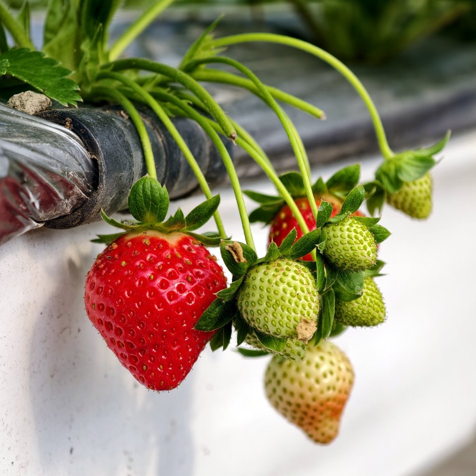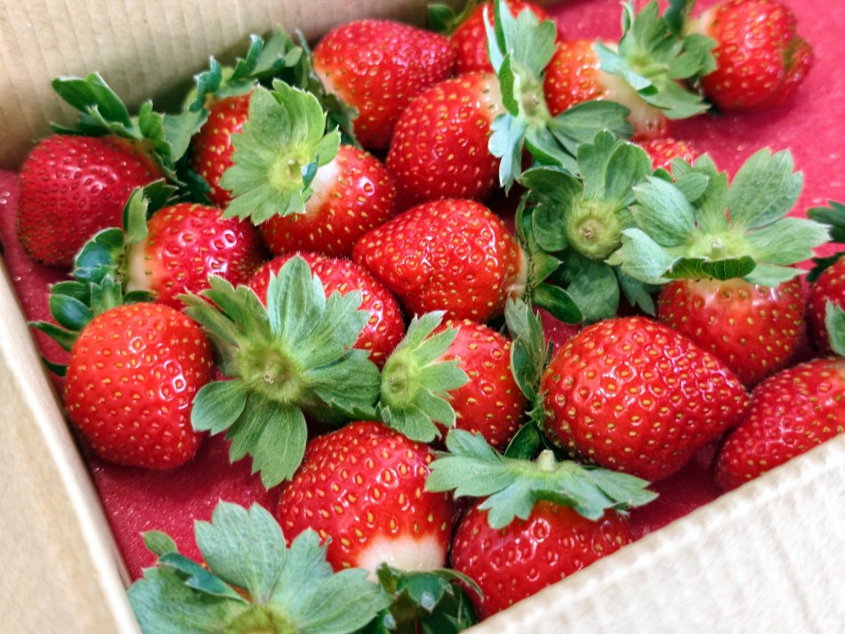 ▼天來一號又名蘋果草莓,對病蟲害的耐性較佳,開花樹多、果實大、硬度高,也因抗病性佳、適應性強、耐運送、好保存等特性,種植面積逐漸增加;蘋果草莓因形似蘋果、帶點蘋果香氣而得名,特色為果實鮮紅、口感紮實偏脆,酸甜適中,不管是直接吃或是搭配蛋糕裝飾、加工都很適合。