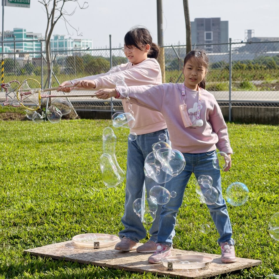 ▼接著就要來去放電啦!休憩區旁的大草地也會開放給小朋友奔跑玩耍,店家還有貼心提供泡泡水,來這裡光是玩泡泡就夠開心的啦~~另外也有客人會自備球類、玩具來玩也是通通沒問題,真的很適合安排親子半日遊。