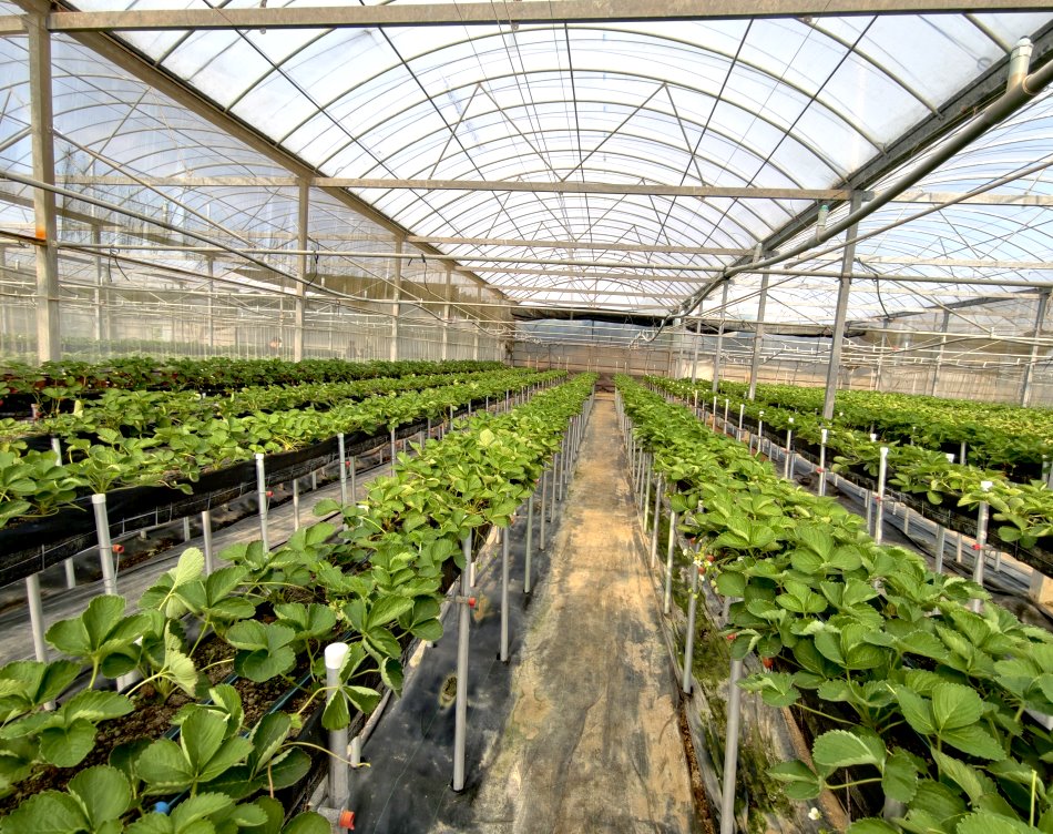 ▼因為新屋天候不佳,多風多雨的特性讓生性嬌嫩的草莓很容易折損,於是牛媽媽有機農場蓋了兩座溫室、兩座網室,專注且用心的種植出無農藥草莓。