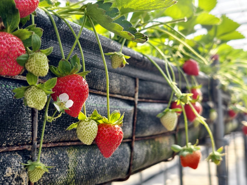 ▼這裡走的是純白色系風格,進到棚內有種一秒來到日本草莓園的錯覺,採用白色的棚布超明亮,不管是採果、拍網美照都很可以;整座溫室以高架草莓栽培搭配智慧農業管理,溫室寬敞無異味,地面平坦乾淨,不會有汙泥或土石,對於輪椅族群或是推推車的朋友來說都很友善。