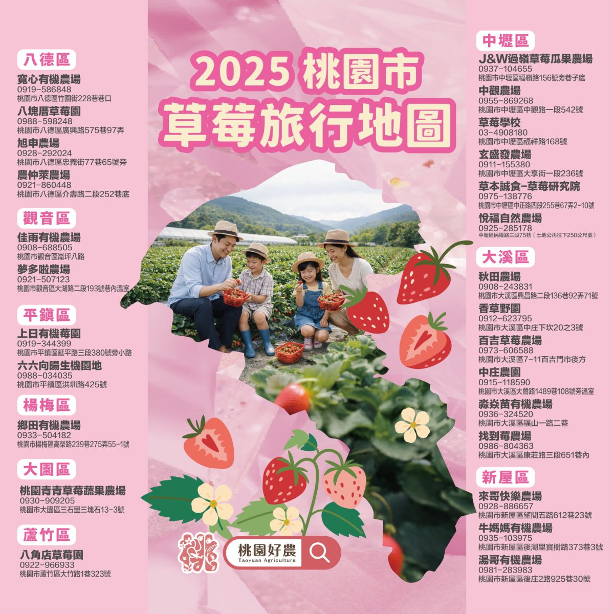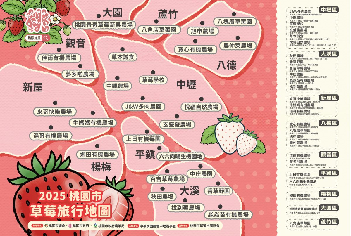 ▼以下是桃園市草莓園的旅行地圖,包括八德、觀音、平鎮、楊梅、大園、蘆竹、中壢、大溪、新屋等地通通有,沒想到在桃園就有超級多草莓園可以選擇,真的很幸福!