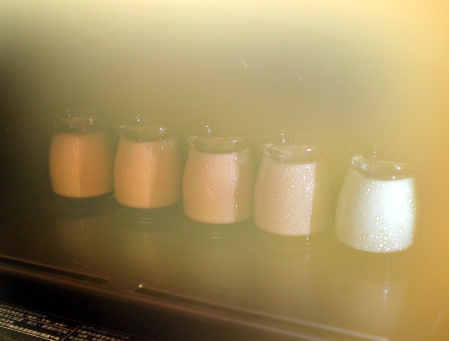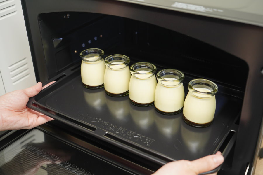 4.將做好的布丁放在烤盤上,按”45柔滑布丁”模式即可,加熱時間約為23分鐘。
