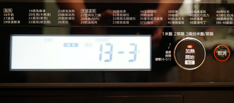 ▼用旋鈕設定13-3模式,按下開始鍵即可,加熱時間約為2分20秒。