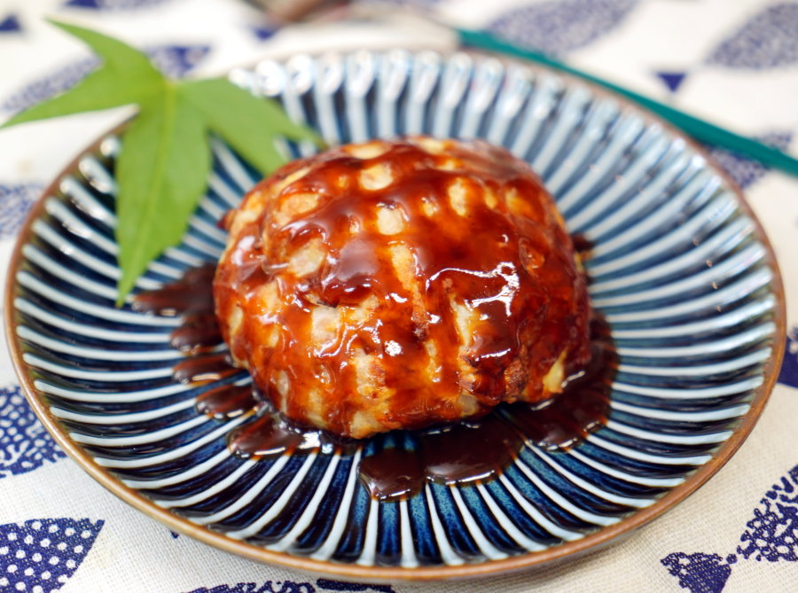 ▼淋上特製醬料看起來更邪惡了~如果懶得調醬汁的朋友也可以像我們一樣,用日式章魚燒醬汁代替,同樣也很合拍喔!