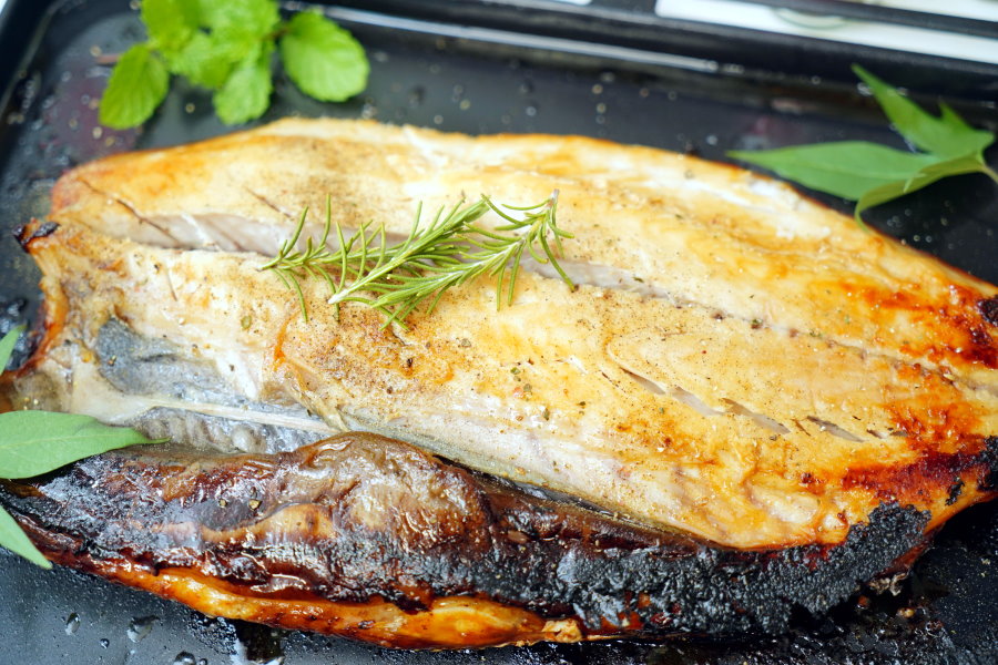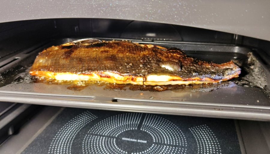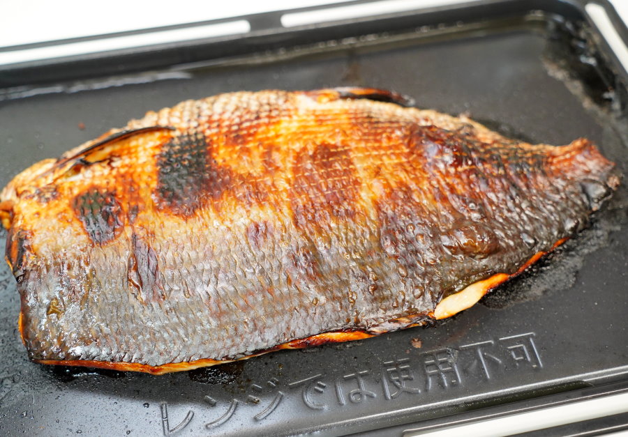 ▼接下來要來挑戰的是超大照燒魚片,因為這台容量夠大,所以整條魚片放進烤盤裡剛剛好,不用對切也能烤出漂亮的照燒魚片。
