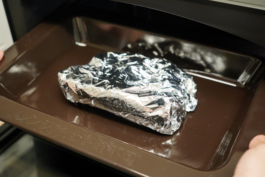 ▼因為我們要使用過熱水蒸氣功能,所以錫箔紙要包好包滿,蔬菜水分跟營養才能完整保留。