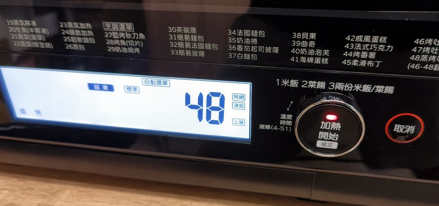 ▼料理模式有燒烤、烘烤、蒸煮、低溫蒸煮、發酵、混合烹調、微波蒸煮、過熱水蒸氣等,共有51項自動菜單,通通標示在機身上頭,只要參照數字就能快速操作,簡單就能烹調出一道道美味。