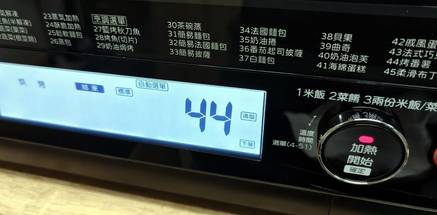 ▼用旋鈕調到”44烤番薯”模式,時間約為45分鐘。