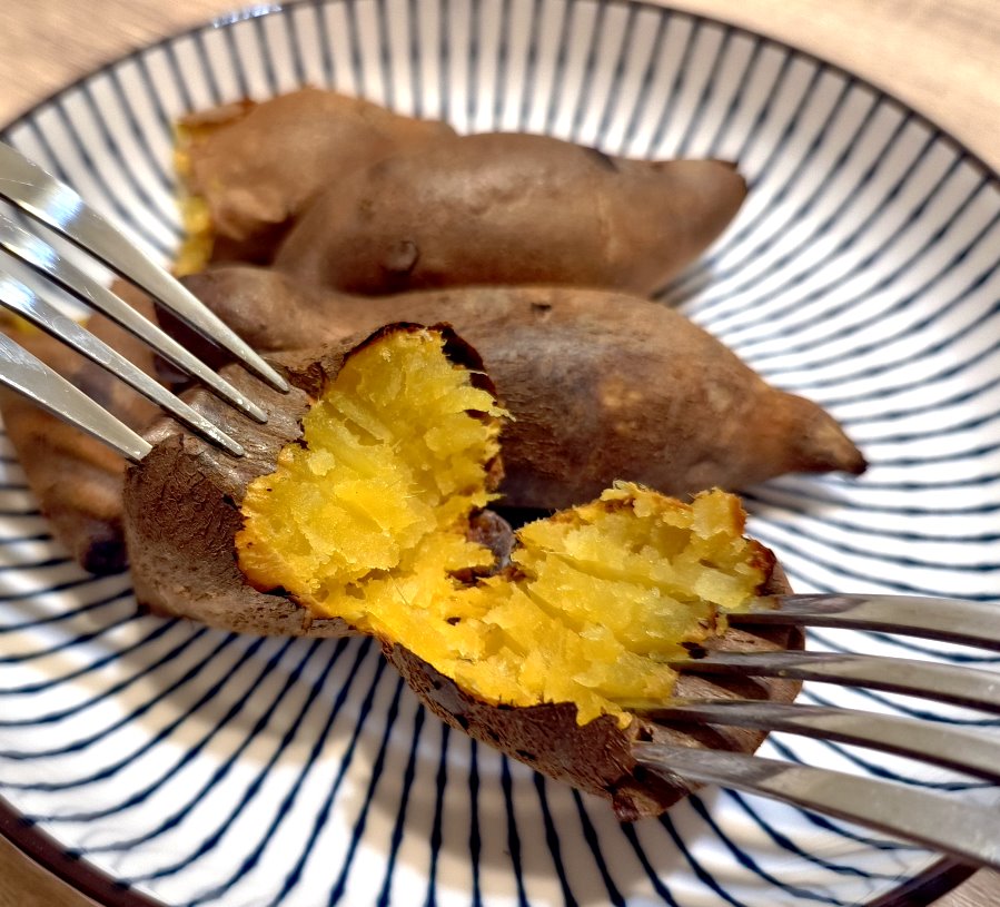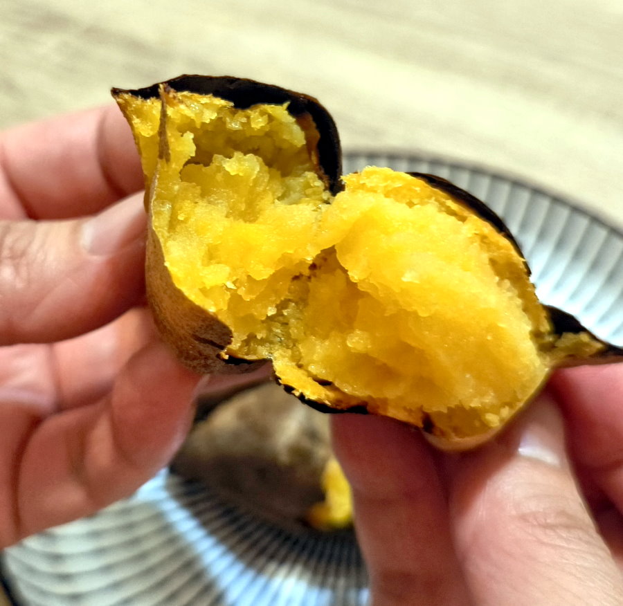▼沒想到用蒸烘烤料理爐也可以烤地瓜,差別只在於沒有炭香味,其他口感都很類似耶!