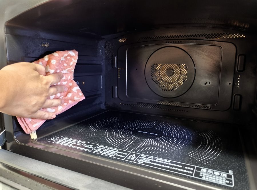 ▼清潔也是我們很在意的重點之一,這款內腔採獨家陶瓷塗層,烹調時食材不容易沾黏,搭配自體清潔模式或脫臭模式,使用3分鐘的蒸氣就能將污垢浮出,只要輕鬆擦拭就能清潔溜溜;而且四面都很平整,清理上也很方便。