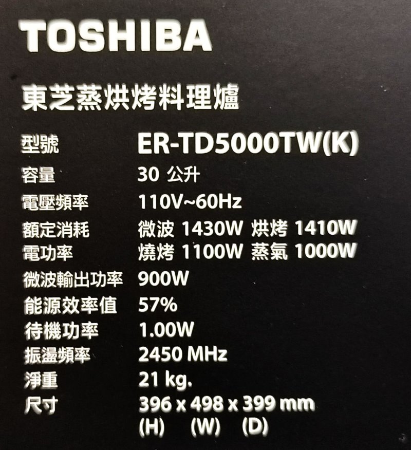 TOSHIBA 東芝30L蒸烘烤料理爐 ER-TD5000TW(K)>>詳細資訊請點我