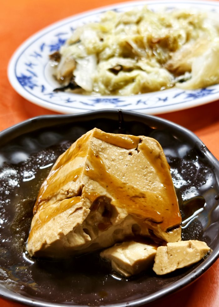 吸滿滷汁精華的滷豆腐是每桌必點,便宜又好吃,誘人的孔洞裡藏著滿滿的甘甜,淋上微甜的醬油膏更是提味。