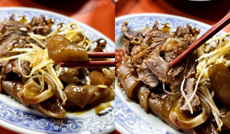 Q彈的豬頭皮與軟嫩的嘴邊肉切得誠意十足,鋪上滿滿薑絲,光看就讓人食指大動,強烈推薦沾點店家的辣椒醬,美味層次直接翻倍!