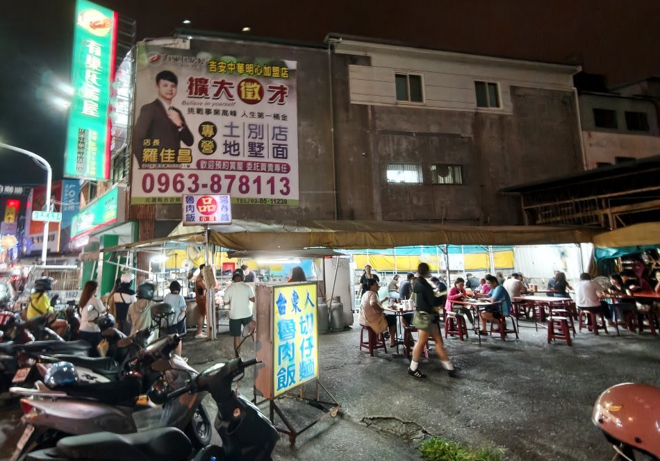 醒目的黃色「台東人」直立招牌,是吉安深夜裡最耀眼的美食路標。