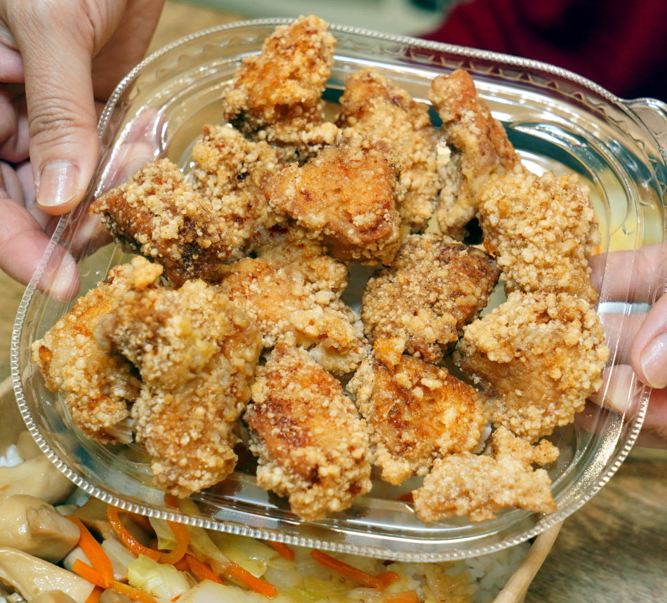 ▼鹹酥雞竟然可以裝滿一整個便當蓋,想要實現鹹酥雞自由就是現在了!!