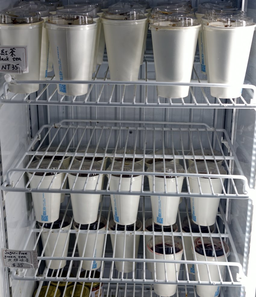 ▼飲料放在冰箱,結帳後可以自取,他們家的紅茶就是古早味紅茶,帶點決明子與甘甜氣息,搭配餐點很合拍。