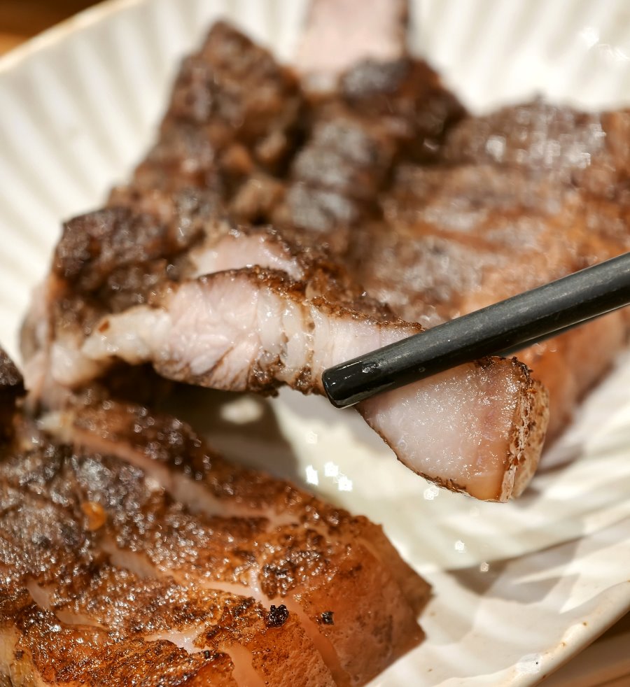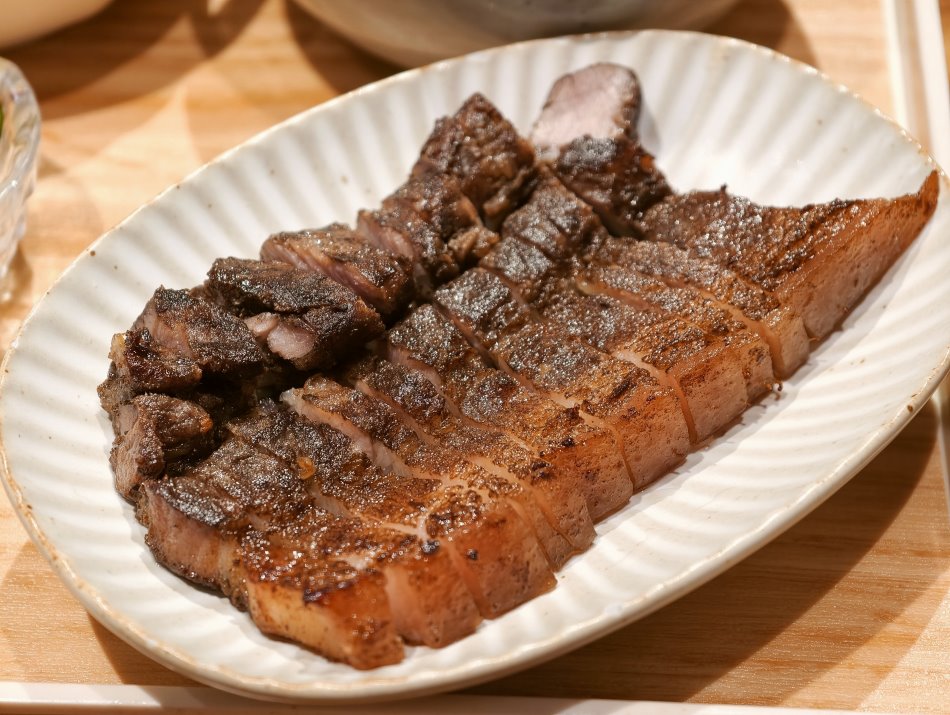 ▼特別選用肉質紮實的五花肉,經過慢火煎烤或煸炒,將表皮處理得焦脆乾爽,油脂部分則被逼出,Q彈而不膩口,不管單吃或配飯都很可以。