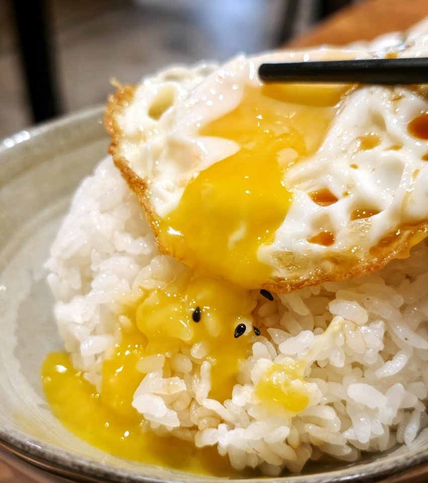 ▼荷包蛋會詢問要半熟蛋或全熟蛋,細節也很用心,我們選的是半熟蛋,搭配粒粒分明的白米飯就是一碗幸福的簡單滋味。
