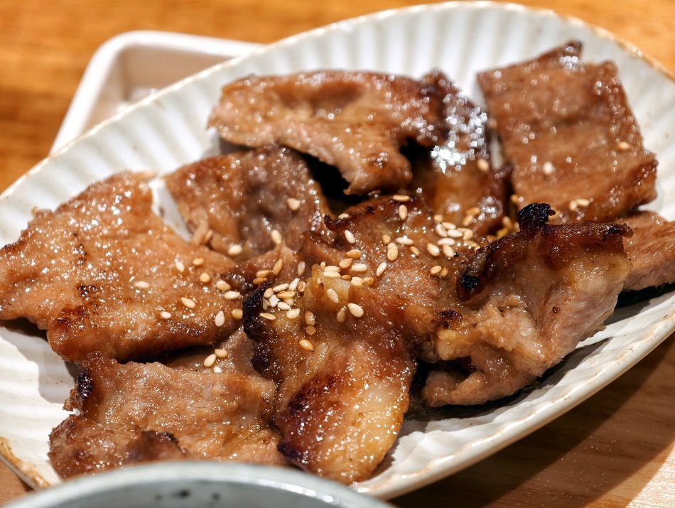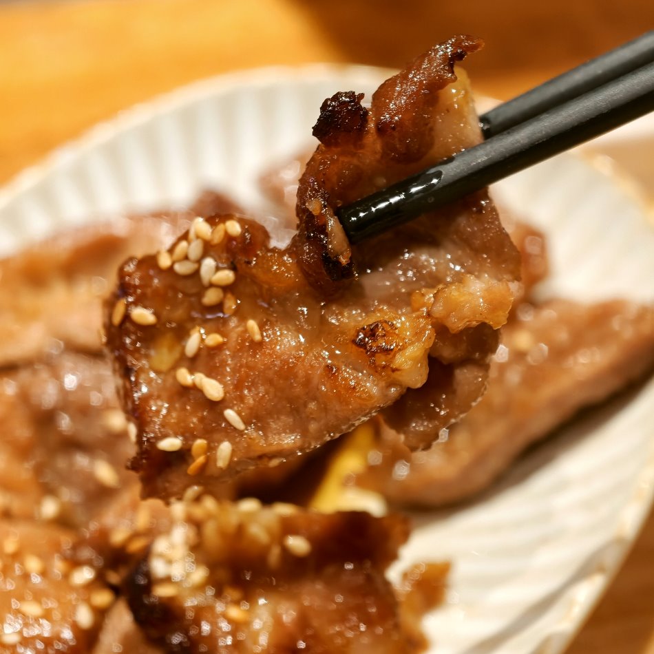 ▼蒜味梅花燒肉份量十足,吃起來軟Q帶有嚼感,但不會過韌不好咬,鹹香甘甜的滋味很開胃;搭配泰式辣椒醬更是提升一個檔次,吃起來較不膩口。