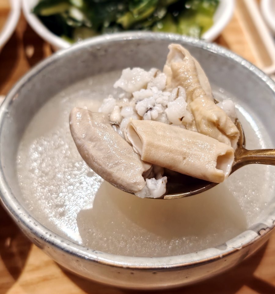 ▼其中一款湯品我們換購四神湯,湯頭清甜帶點酒香,配料都煮得剛剛好,腸子也清理得很乾淨,吃起來沒有異味,整體而言算是滿不錯的。