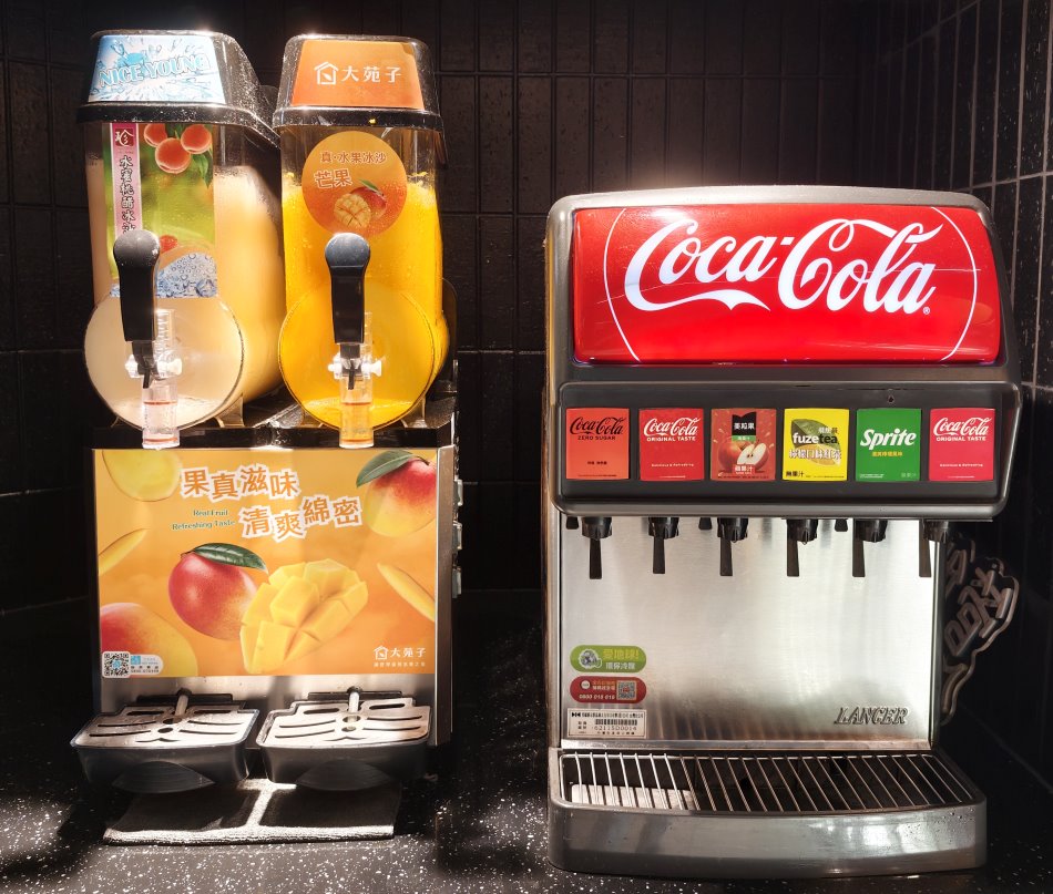 ▼飲料除了採用可口可樂品牌之外,還有大苑子冰沙及水蜜桃醋冰沙,看到大苑子多喝一點就對啦!