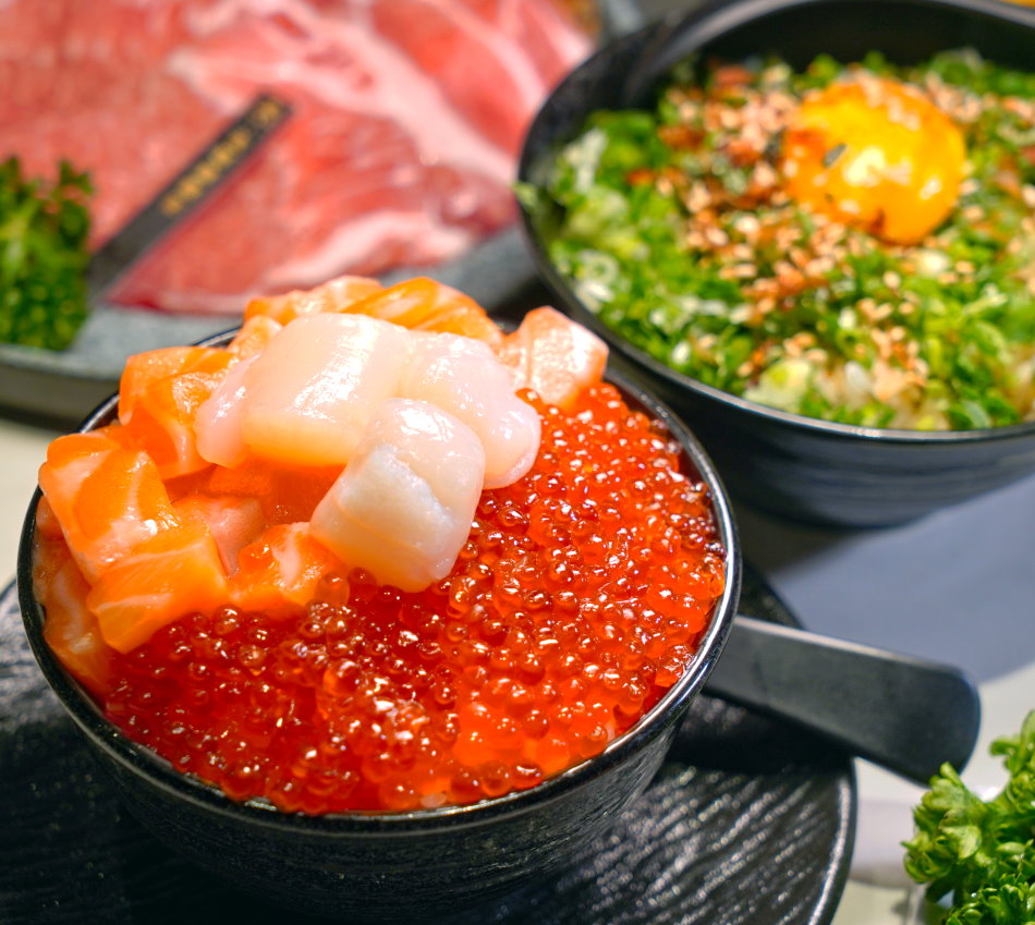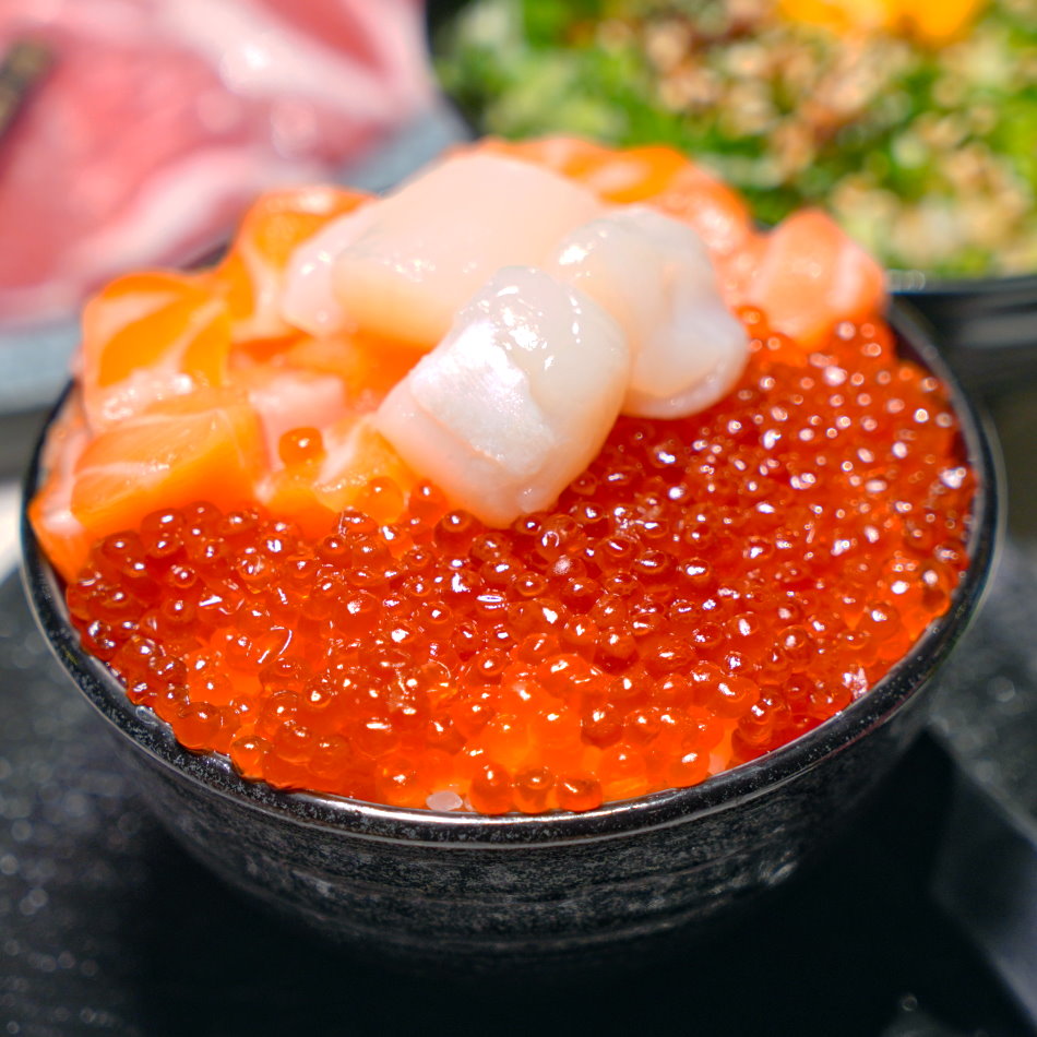 ▼海鮮丼飯更是每日限量,看到一定要點起來;米飯上頭鋪了滿滿的鮭魚卵、生鮭魚卵,再搭配生食級干貝,光看就是奢華感十足,只要199元就能吃得到。