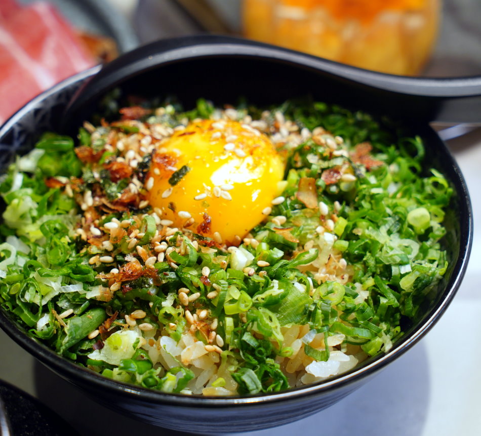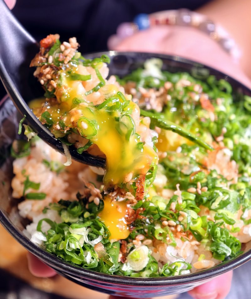 ▼蔥花月見飯(+49元),喜歡蔥香的朋友一定要加價升級這款,蔥花清香而不辛辣,搭配滑順蛋香、柴魚香氣,整個超級下飯。