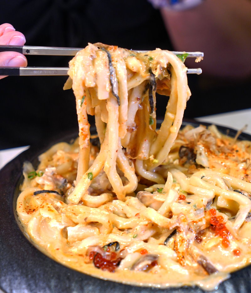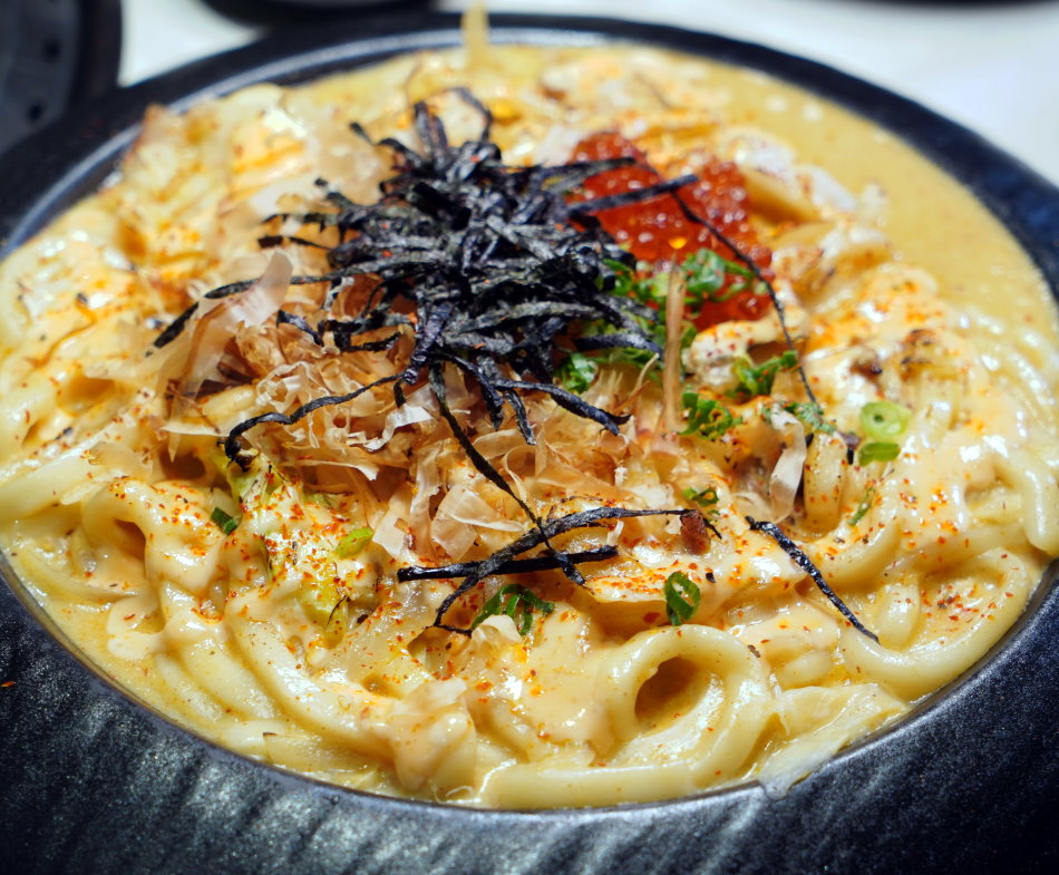 ▼干貝明太子麻奶烏龍麵(+199元),以麻奶醬搭配烏龍麵、鮭魚卵、明太子、海苔絲、蔥花、小干貝等配料,這是我們第一次吃到麻奶口味的烏龍麵,吃起來濃郁Q滑又夠味,吃到鮭魚卵、小干貝時很有驚喜,微微香麻搭配醇厚奶醬,吃起來溫潤美味又不會有辛辣感。