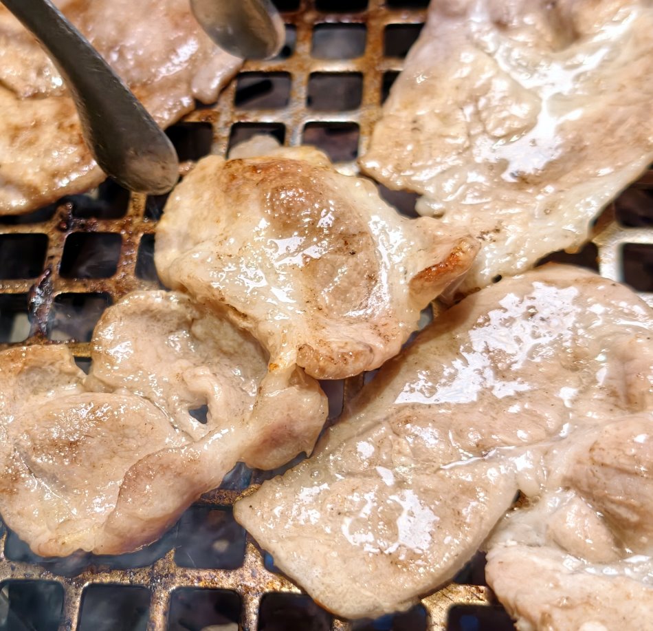 ▼厚切牛舌偏牛舌根部的部位,我們最愛烤至外層微焦、裡頭軟嫩,吃起來鮮嫩脆彈、油香豐富,還帶點迷人的奶香味,簡單搭配玫瑰鹽就非常美味,吃起來好銷魂啊!