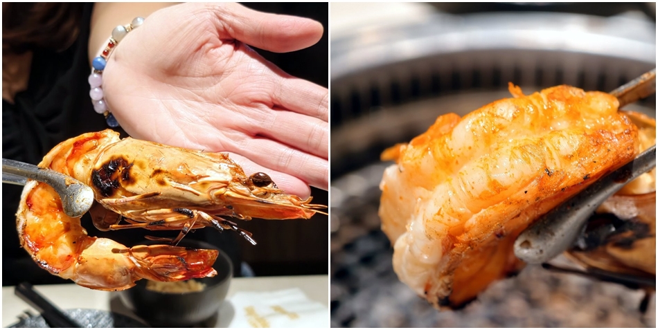 ▼烤好的根島蝦手臂蝦尺寸還跟手掌一樣大,而且幫大家都去殼處理,直接享用即可;吃起來Q彈鮮美又彈牙,一口咬下超級飽口,滿滿海味被緊緊鎖進肉質裡頭,濃郁的蝦味鮮甜又滿足。